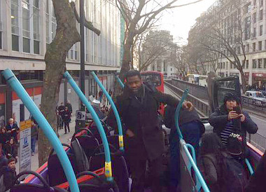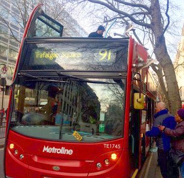 Hétfő délután 1 óra körül szokatlan baleset történt London belvárosában, az egyik, a 91-es viszonylaton közlekedő emeletes autóbusz tetejét leborotválta egy, a szélső forgalmi sáv fölé nyúló fa. Érthetetlen, miért nem vette figyelembe a kihelyezett, erre a veszélyre figyelmeztető táblát a sofőr.