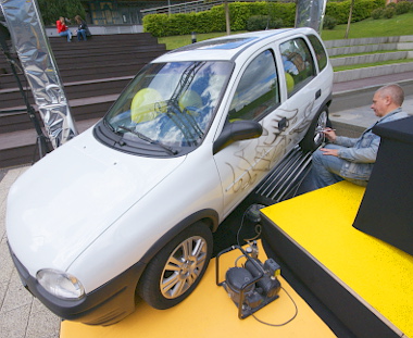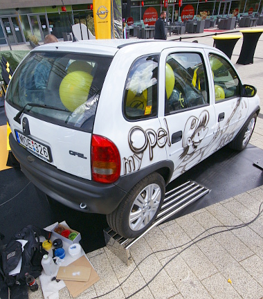 Megjelenésekor a gömbölyű B Corsa egyedi megjelenésű volt, olyannyira, hogy több piacon egyszerűen leálltak a reklámkampánnyal; anélkül is nagyobb volt a kereslet, mint a gyártókapacitás. A karakteres forma miatt döntöttek tehát a kisautó mellett, igazából két fontos szempont volt: legyen szentgotthárdi motorja (1,4 literes, 16 szelepes benzines 90 lóerővel) és fehér színe. Utóbbi azért fontos, mert vászonnak használják a karosszériát. Mintegy három hónap telt el a Corsa megvásárlása óta, amelyet aztán Opel gyári alkatrészek segítségével hoztak tökéletes műszaki állapotúra. A szokásos karbantartáson felül (folyadékok és kopóalkatrészek) a kipufogórendszer cseréje, egy komolyabb fékjavítás történt, működőképessé tették a légkondicionálót, no meg eltüntették még a legapróbb karosszériahibát is. És mivel a végeredményen sokat dob majd, a gyári tartozékok között megtalálható könnyűfémfelniket is kapott az autó.
