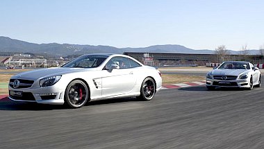 Azért csődítették az újságírókat Barcelonába a Mercedes sajtósai, hogy megmutassák nekik az új f1-es versenyautót. Meglepetésként megmutatták a résztvevőknek az új SL 63 AMG roadstert is.