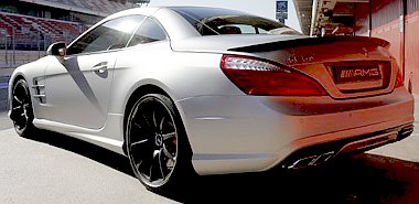 Elődjénél fürgébb az autó, miközben a szabványos fogyasztása 30 százalékkal lett alacsonyabb. Kívülről az új, nagyobb légbeömlő nyílásokkal ellátott lökhárítóról, a felnikről és az első sárvédőkön elhelyezett V8 Biturbo emblémákról lehet felismerni az SL sorozat kezdeti csúcsmodelljét. Pontosabb számokat majd a Genfi Autószalonon tudunk az autóval kapcsolatban.