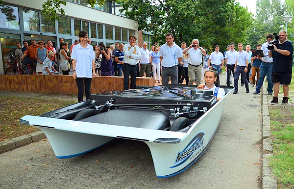 Valósággá lett a látványterv, néhány hónap alatt megépült a benzintakarékos Megaméter utódja, a napfényre gyorsuló MegaLux. A GAMF-kar kiselőadójában mintegy százan voltak kíváncsiak a 14 fős járműépítő csapat eddigi munkájára, konkrétan arra a napelemes autóra, amit tavaly ősz óta építenek, fejlesztenek. A jármű elkészült, szeptemberben „postázzák” Ausztráliába, hogy októberben rajthoz álljon a World Solar Challenge-en.