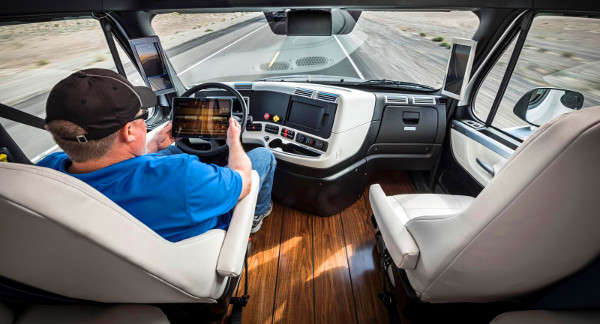 A Freightliner Inspiration elnevezésű alkotása autóúton (highway) már emberi beavatkozás nélkül is képes haladni, a ma is elérhető vezetési segédeken felül egy radar és egy sztereókamera beépítésével megoldották az egész robotautó-kérdést. Mielőtt Nevada állam megadta volna az engedélyt a közúti használatra, a jármű már 10 ezer mérföldet (16 ezer km) teljesített a Mercedes papenburgi próbapályáján. A sofőr tehermentesítése mellett a fogyasztás 5 százalékos csökkenését is ígéri a rendszer.