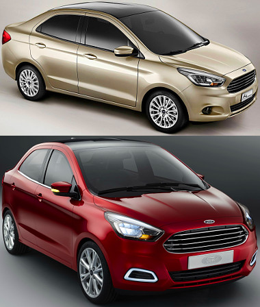 A Figo esetén az adózási szempontból lélektani 4 méter alatt tartották a karosszéria hosszát, ennek megfelelően lett furcsa a befejezés. Már a C oszlop is vékonyabb a Ka Sedan-hoz képest, nem is beszélve a sokkal rövidebb lépcsőről. Érdekes módon nem csak a befejezés tér el a két autón, eltérő kilincseket kap az indiai és a világautó, és a bordó autó külső tükörházában látjuk az oldalsó irányjelzőt, ilyennek nyoma sincs a pezsgőmetál karosszérián.