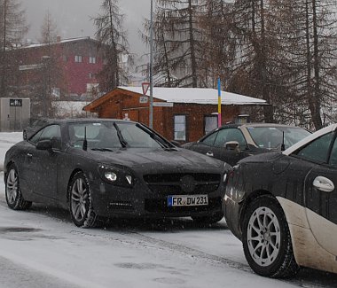 Rögtön két különlegesség is megfigyelhető olvasónk, Bognár Nándor fényképein: havazik az Alpokban, valamint a Mercedes csoportosan teszteli az új Mercedes SL roadstert.