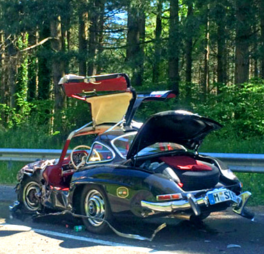 Kezdjük a jó hírrel, annak ellenére, hogy a balesetben résztvevő mindkét autó alaposan összetört, csak két könnyű sérültje van a szombat reggel bekövetkezett balesetnek, amely során egy, a Mille Miglia veterán túrán résztvevő Mercedes 300 SL ütközött egy BMW 1-es sorozattal.