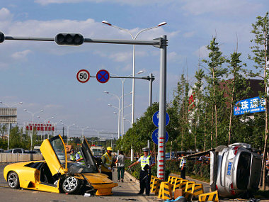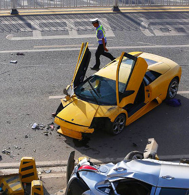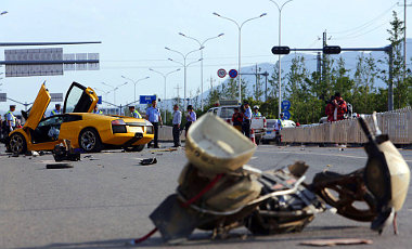 A város Guan Nan sugárútján nagy tempóval, a megengedett 50 km/órás sebesség többszörösével száguldott az autó, amikor oldalról beleütközött egy Hyundai ix35-ös szabadidő-autóba, amely az oldalára borult, és eközben ráesett egy elektromos robogóra és annak vezetőjére. Utóbbi azonnal életét vesztette a balesetben, a Lamborghinit vezető férfi és a szabadidő-autó két utasa könnyebben sérült csak meg az ütközésben.