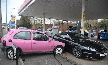 Swindon közelében, Kingshillben egy benzinkúton tankolt egy fekete Aston Martin DBS tulajdonosa. A töltőállomásról távozó, rózsaszínű Vauxhall (Opel) Corsát vezető fiatal hölgy azonban keresztülhúzta a számítását, hiszen úgy tűnik, totálkáros lett a használtan is több, mint 30 millió forint értékű sportkocsi.