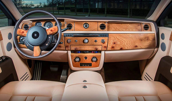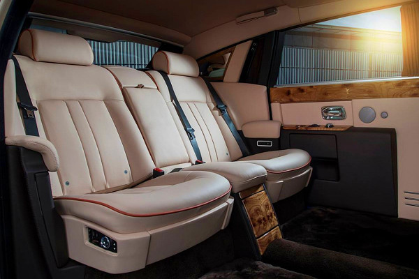 Az utastérben a műszerfal felső részének kivételével a külsőhöz hasonló halvány-rózsaszín bőrt használtak mindenfelé, a padlószőnyeg maradt fekete színű gyapjú. A belső igazi különlegessége a bőr színén kívül az, hogy a fabetéteken megjelenő Spirit of Ecstasy ábrát aranyfóliából készítették el. A Rolls-Royce Sunrise Phantom Extended Wheelbase egyedi darab, de ha a kedves ügyfél pénztárcája is bírja, akkor szívesen építenek még egyet.