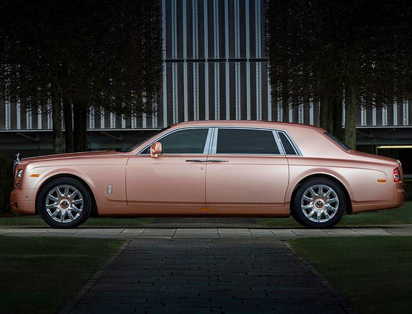 Sikerült egy olyan rózsaszín-árnyalatot kikevernie a Rolls-Royce mérnökeinek, ami nem elegánsnak hat a Phantom Extended Wheelbase óriási karosszériáján is. Nem csak kívül, hanem belül is, hiszen ez a jellegzetessége a Sunrise, azaz napfelkelte elnevezésű alkotásnak.