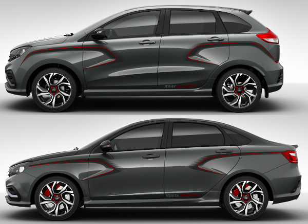 Átalakították mindkét autó megjelenését, nem csak a lökhárítókat cserélték le, de nem spóroltak a matrica-dekorációval sem. Közös vonás a piros díszcsíkok megjelenése az első-hátsó lökhárítókon és az oldalfal-domborítások pereménél. A Lada Sport felelősei jövő év közepére teszik az XRay Sport piaci rajtját, a Vesta Sport-ra 2017 végéig kell majd várni – utóbbinál logisztikai problémát jelent, hogy az átépítést végző manufaktúra Togliattiban van, a Vesta pedig Izsnyevszkben készül.
