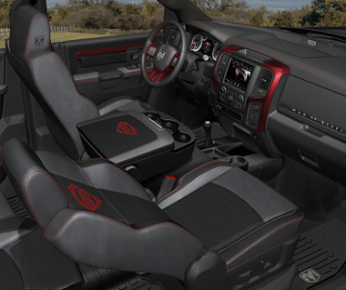 A karosszériát Superman új ruháját felidézni hivatott Dark Ceramic Grey színű mintás felületű fóliával vonták be, a tető fényes fekete, a hűtőrácson nyomokban felfedezhetjük a piros színt is – de nyoma nincs a köpenynek. Az utastérben található Ram logókat Superman logókra cserélték le.