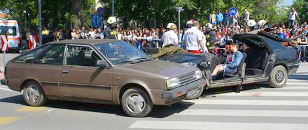 Bűn- és baleset-megelőzési céllal tartott rendezvényt hétfőn Békéscsabán, a Kossuth térnél a városi kapitányság. Az előadás azt szemléltette, mi lehet a következménye annak, ha valaki ittas vagy bódult állapotban vezet. A valósághűen berendezett helyszínen két személygépkocsi ütközött össze. Az egyik autóban hat középiskolás fiatal ült.