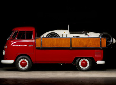 Ami azonban igazán különlegessé teszi a Porsche Formula V versenyautót, az az eredeti szállítójármű mintájára készült Volkswagen T1-es pickup szállítójármű. Az összes, a Porsche gyár által használt példány balesetben megsemmisült vagy porrá rohadt az évek során, ezért teljesen újat kellett készíteni. Egy, a megfelelő hónapban gyártott roncsot sikerült megvásárolni, amelyet aztán teljes felújítás követett. Az eredetileg galambkék színű autót azonban nem egyszerűen felújították, hanem alaposan át is építették.
