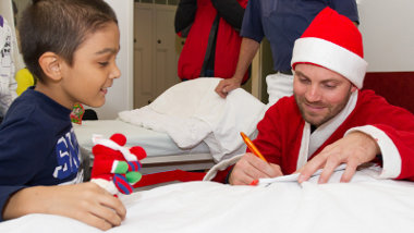 Talmácsi Gábor gyerekként motoros bőrcsizmáját pucolta fényesre és azt tette ki lefekvés előtt az ablakba. Az évek múlásával sem felejtette el azt a sok szép emléket, melyet Mikulás kapcsán ő is átélt annak idején. Éppen ezért is érezte különösen örömteli feladatnak, hogy Mikulásként ellátogasson a Heim Pál Gyermekkórházba és meglepje az ott lakó kis betegeket. Együttműködő partnereinek köszönhetően zsákja a hagyományos Mikulás-csomagokon túl – melyeket a Tesco biztosított – monitorokat, nyomtatót, laptopot, csecsemő mérleget, vérnyomásmérőt, a rehabilitáció során használatos eszközöket, gyerekjátékokat rejtett. Utóbbi hasznos ajándékokat a Hungrana Kft., az E85 bioüzemanyag gyártója ajánlotta fel segítve ezzel is az intézmény működését.