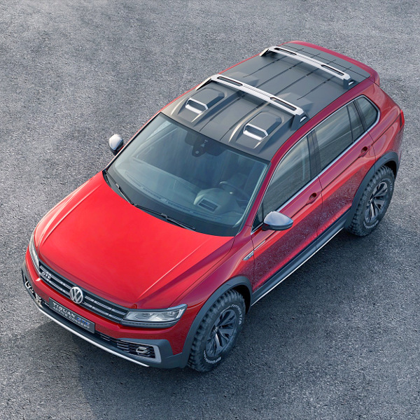 De nem csak a technika különleges a Tiguan GTE tanulmány esetén, a megjelenést igyekeztek sportosra venni, ami ebben a műfajban terepralit jelent. Legszembetűnőbbek a ballonos bütykös abroncsok (245/70 R16), a fekete alsó szoknyán már nem lepődünk meg egy szabadidő-autó esetén, a tetőlemezen az első utasok feje fölött elhelyezett szellőzők értelme megkérdőjelezhető. A hibrid változat egyébként az európai, rövid tengelytávolságú és csak ötszemélyes karosszériára épül, az Egyesült Államokban három üléssorral kínálják majd a Volkswagen Tiguant.