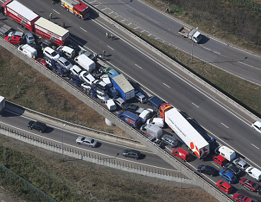 Az ember azt hinné, hogy Angliában az autóvezetők fel vannak készülve a ködre, de hát a tegnap reggel bekövetkezett tömegbaleset mást mond. A tengerszoros felett ívelő hídon mintegy száz autó ütközött össze, és csak annak köszönhető, hogy vége lett a tíz percen át tartó szerencsétlenségnek, hogy egy – a sűrű ködfolt előtt tartó kamionos észlelve a bajt, keresztbe állt a gyorsforgalmi úton.