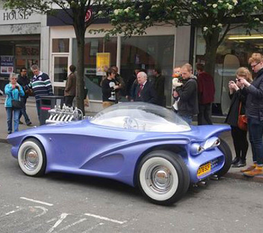 Az eredmény egy döbbenetes megjelenésű sportkocsi lett, amelyet Cosmotron-nak keresztelt el az alkotó. A stílus egyértelműen az ötvenes évek amerikai tanulmányait idézi, amikor még szentül hittek abban, hogy atommeghajtású repülőautók uralják majd az eget az ezredforduló környékén. Ehhez képest még mindig földhöz ragadt módon közlekedünk, benzinnel (vagy gázolajjal) hajtott autókkal.