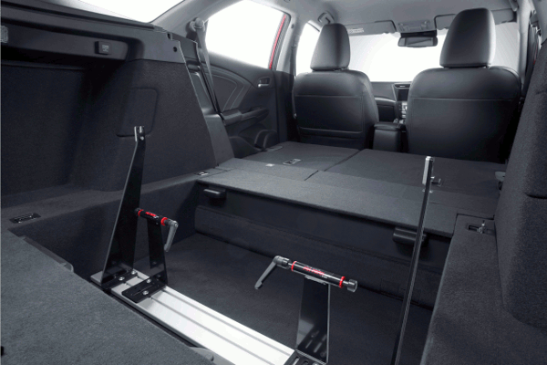 Egyfelől biztonságosabb ez a megoldás, másfelől a kerékpárok is védve vannak szállítás közben az időjárás viszontagságaitól, és nem növelik a légellenállást és így a fogyasztást. A 99. Giro dItalia kerékpáros versenyen debütált az In-car Bicycle Rack elnevezésű megoldás, amelyet majd októbertől lehet megvásárolni kiválasztott márkakereskedésekben. A csomagtér alatti tárolórekeszbe kerül egy alumínium sín, amire aztán egy- vagy két darab tartót lehet erősíteni, ahová az első villa csatlakoztatható, és rögtön ide lehet tenni a kiszerelt kereket is. A meglévő csomagrögzítő gyűrűt használja a kerékpár vázát szilárdan tartó öv. Angliában már be is árazták a tartót, egy kerékpár szállítására alkalmas változatban 285 font (117 ezer Ft) az ára, a második kerékpár szállítását lehetővé tevő tartó további 150 fontot (61 ezer Ft) kóstál.