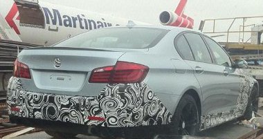 Az autóról már régóta jelennek meg kémfotók, de álca nélkül még sosem sikerült lekapni az új BMW M5-öst. Most is csak a részleteket jótékonyan takaró mintás tapétával ellátott példányt sikerült lefotózni alig néhány pillanattal azelőtt, hogy eltűnt volna egy teherszállító repülőgép gyomrában a jármű. Minden bizonnyal az utolsó pillanatban készítik el a sajtófotókat a világnak egy olyan pontján, ahol szép az időjárás, nehogy azok idejekorán kiszivárogjanak.
