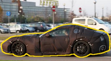 Persze mindenzt olyan vastag álcával burkolták be, hogy semmi nem látható a végleges formából az oldalajtók üvegén kívül. A forma hasonló lehet az FF-hez, csak attól eltérően hétköznapi módon végződik majd a karosszéria. A V12-es erőforrás alaphelyzetben a hátsó kerekeket hajtja, az olaszok különleges összkerékhajtása felár ellenében lesz elérhető. Később hibrid hajtással – nyugi, nem spórolós, hanem F1-szerű extra teljesítménylöketet biztosító – hibrid hajtással is készül majd az autó, aminek bemutatkozása jövő tavasszal, a Genfi Autószalonon várható.