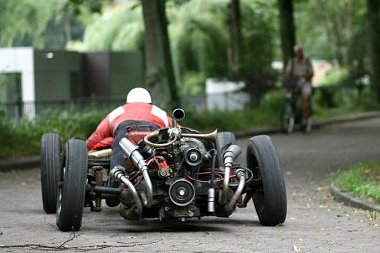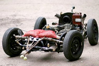 Egy 1939-es évjáratú, tehát nagyon korai Volkswagen Bogár adta az alkotás alapját, amelyet steampunkos beütéssel – fabotok, krumpliszsák, használt tornacsuka – tettek sofőr szállítására alkalmas járművé.