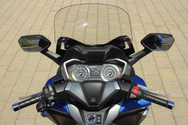 Itt is kényeztetik a motorost a Smart key-yel, vagyis a kulcs nélküli indítással, elektromos záras a tanksapka-fedél és a hátsó doboz is. A tükrökbe sajnos belelóg a vezető karja, úgy egyharmadig takar, de azért lehet hátra látni bennük.