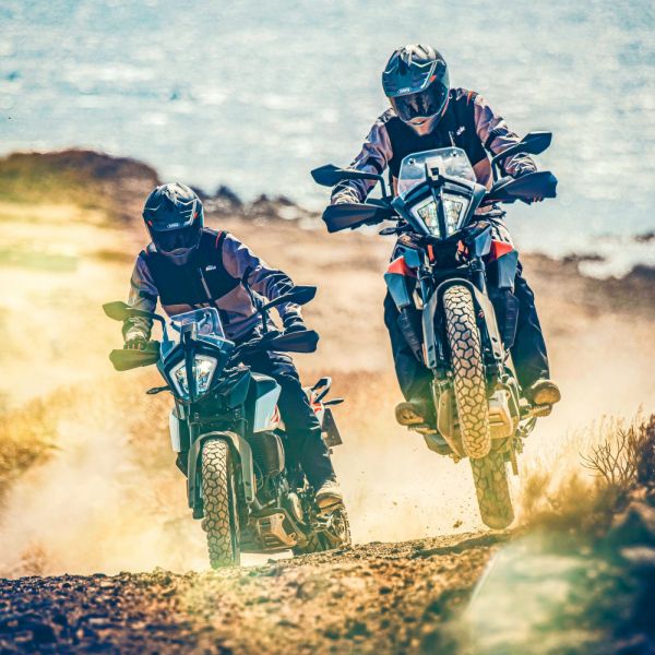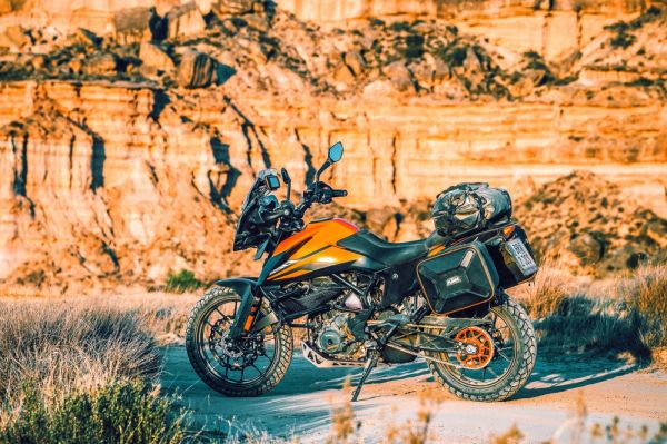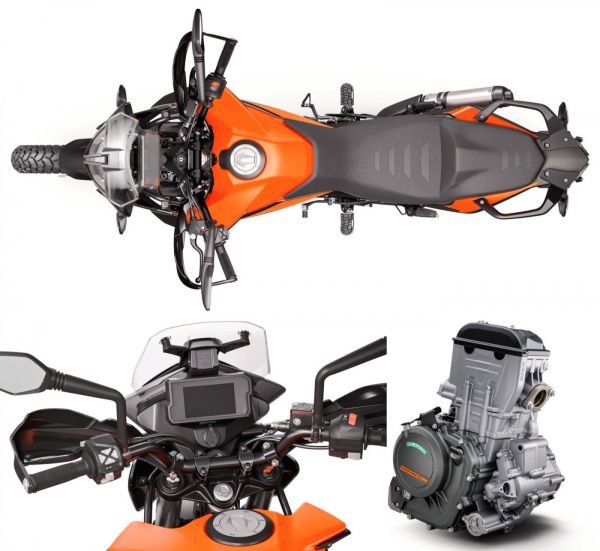 A 372 cm3-es, 44 lóerős, egyhengeres blokk ne tévesszen meg senkit, stílusát ugyanis a nagytesóktól kölcsönözte az újdonság. Kis túlzással úgy néz ki, mintha bármikor neki lehetne vele vágni egy sivatagi túrának, 855 mm-es ülésmagasságával pedig túl is tesz a 790 Adventure-ön. Már alapból olyan gumival érkezik (Continental TKC70), amellyel alkalmas közepes terep leküzdésére is, de a 19 colos első kerékméret, a 200 mm-es szabad hasmagasság, vagy a szériafelszereltségbe tartozó kézvédők is utalnak a felhasználási körre.