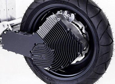 A konstruktőrök az egyszerűség kedvéért a két kerék közötti egyenes vonalba sűrítették a technikát, itt találhatóak a rugóstagok. Középen van az akkumulátor, a hajtómotor a szabályzóelektronikával együtt a hátsó kerékagyban található. Az állandó mágneses szinkronmotor teljesítménye 14 lóerő, a 80 km/órás tempót 4 másodperc alatt éri el a motorkerékpár, a csúcssebesség elektronikusan korlátozott 120 km/óra. A gép egyébként 43 fokban dönthető, a jó manőverezhetőséget még a mindössze 35 centi magasan lévő tömegközéppont is segíti.