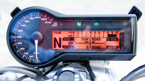 Ha viszont sportos a külső, joggal várhatjuk el, hogy úgy is menjen a motor, ahogy kinéz. Bár a csúcsteljesítmény csak 15 lóerővel nőtt (125 LE), a nagy GS-ben debütált 1200 cm3-es, „vizes” boxer sokkal élénkebbnek tűnik a gyakorlatban. Már alacsony fordulatról remekül húz, a középső tartományban pedig iszonyatosan nagyot tol, szóval erőből nincs hiány, és a hangélmény is stimmel. A „boxerségből” egyébként mindössze annyit érezni, hogy indításkor csavaró erő lép fel, és az is fontos, hogy a kardánhajtás is észrevétlen marad menet közben. Itt már nincs olyan, hogy kanyarban nagy gázadásra instabillá válik a motor, de nem csak ezért mondom, hogy a sportos jelző illik erre a motorra. A radiális Brembo nyergek úgy lassítanak, mintha horgonyt dobnánk az aszfaltba (meg is kell szokni a nyomáspontot, mert harapós az első), a Dynamic ESA futómű pedig automatikusan a mindenkori körülményekhez állítja a csillapítást az aktuális menethelyzet és manőver függvényében. Ezt konkrétan úgy kell érteni, hogy kanyargós úton felkeményedik a futómű, és ilyenkor még egy lapáttal rátesz az élvezetekre, ha a kuplungolás nélküli váltásokat támogató Pro váltóasszisztenst (123 800 forint) is megrendeljük. Szerencsére az üléshelyzetet nem tették sportosabbá, vagyis az új R 1200 R is kényelmes motor, az egyedüli, ami gátolja az igazán hosszú kiruccanásokat, az a szélvédelem hiánya, de ha nem megyünk autópályára, biztosan nem okoz csalódást e területen sem. Az sem kevésbé fontos, hogy tisztességes méretű ülés jutott az utasnak, s bár a párnázása kemény, átlagos termetűeknek nem lesz szenvedés az utazás. Az egész motor összeszedettségét talán az jelzi a legjobban, hogy mindössze olyan apróságokba tudunk belekötni, mint hogy az új műszerfal digitális része napsütésben nehezen leolvasható, vagy hogy az egyes fokozatot vehetné finomabban a váltó. Meg kell hagyni, az R 1200 R remekül sikerült darab!