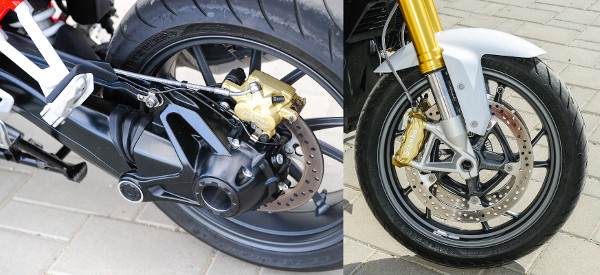 Igényes, „karbantartásbarát” kardánhajtás. Radiális rögzítésű Brembo féknyergeket kapott az újdonság