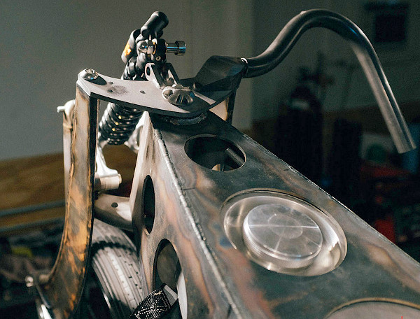 Nem csőből, hanem egyedi, acéllemezekből kézzel összeállított váz adja a gerincét a gépnek, a BMW R100/7-esből származó az 1 literes boxert teljesen felújítottak beépítés előtt. A futómű-geometriát nagy tempójú, egyenes haladásra lőtték be, állítható lengéscsillapítók nyújtanak lehetőséget némi beavatkozásra.