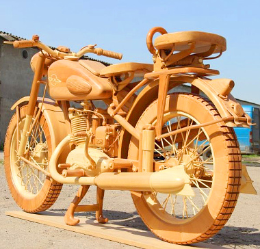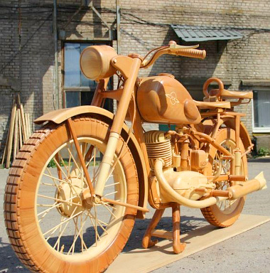 Az asztalos foglalkozás szezonális jellegű munka annyiból, hogy télen sokkal kevesebb megrendelést kapnak. Legalábbis így van ezzel Jurij Hvtisishvili, aki idén szilveszterkor fogadta meg, hogy valami különlegeset fog csinálni. Aztán miközben munkára várva unatkozott, január 18-án kipattant az agyából az isteni szikra – ami szerencsére csak jelképes, hiszen leégett volna a műhely -, hogy farag magának egy motorkerékpárt.