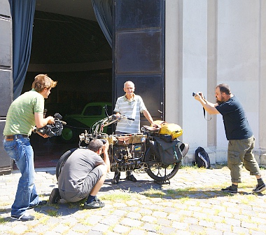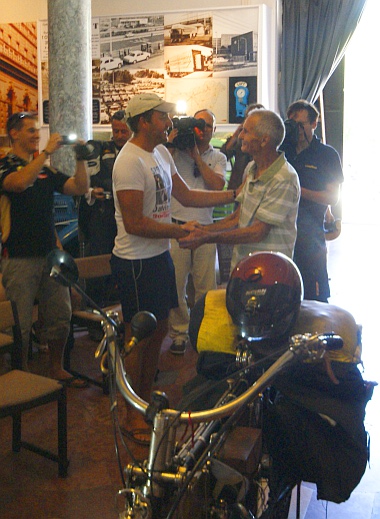 Ron eddigi útja során már hozzászokott, hogy folyamatosan fényképezik, békésen tűri a magyar sajtó- és érdeklődő motorosok támadását. Mátyás Zoltán egy kicsit háttérbe szorul, pedig ő még nagyobb túrát tesz meg, saját erejéből. Bali szigetéről indulva kerekezi körbe a Földet, néhány napja érkezett haza Magyarországra, és csodálta is az idős motoros gépét, amely felépítésében erősen hasonlít az ő kerékpárjára. Ron utazásáról az oldblokeonabike.com webdoldalon számol be időről-időre.