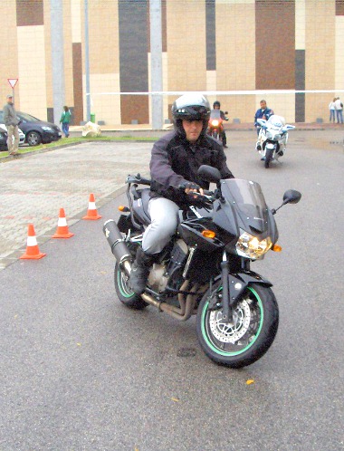 A motorosok a rövid bemelegítést követően két csoportban, kezdő illetve haladó képzésen vehettek részt, melyet a GY-M-S Megyei Rendőr-főkapitányság Közlekedési Baleset-megelőzési Bizottságának támogatásával két nagy tapasztalattal rendelkező motoros rendőr, Tabi Sándor és Dénes László vezetett. A 9:30-13:00-ig tartó tréning végén a motorosok bár fáradtan, az esőtől kívül, az izzadságtól pedig a motorosruhák alatt teljesen átázva, de hasznos élményekkel és tudással gazdagodva indulhattak haza. Az eső miatt pedig senki sem panaszkodott! -A rendezvény során ugyan többekben felmerült, hogy a kialakított pályákat az ő motorjukkal nem lehet teljesíteni. Ekkor viszont oktatónk maga bizonyította a motorok alkalmasságát, illetve a motorosok technikai tudásának hiányosságait, esetenként úgy is, hogy a motoros utasként vett részt a bóják kerülgetése során.