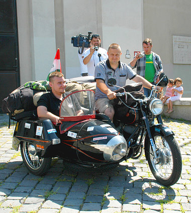 A kétfős csapat, Treszl Gábor és Hunyadi Bence, egy 1965-ös évjáratú Pannonia T5-ös típusú 250 cm3-es, 15 lóerős, 70 km/óra végsebességű motor matuzsálemmel vágott neki az oda-vissza 12.000 km-es útnak. A már hagyományosnak számító veterán motoros expedíció korábban sikeresen teljesítette küldetését a 2004-es athéni és a 2008-as pekingi olimpiára is. A Kínát megjáró ugyanilyen típusú „Panni néni” becenevű háromkerekűt a 2008-as túra befejezése óta a Közlekedési Múzeum őrzi.
