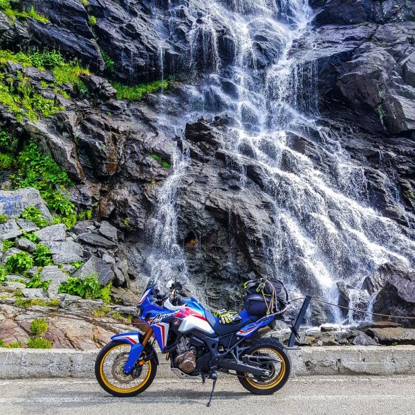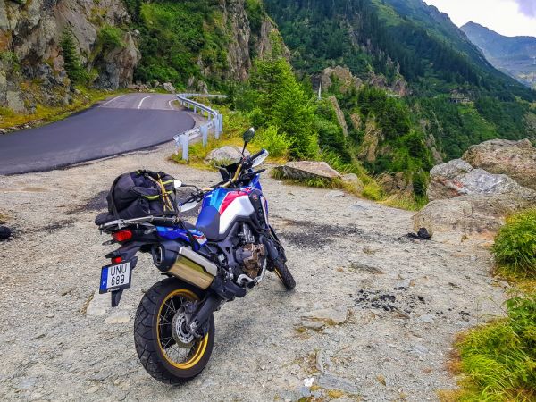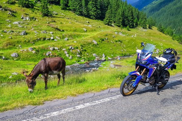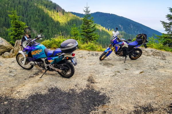Az erdélyi túrán az Autó-Motornál tartós tesztprogramot teljesítő Honda Africa Twin volt a társam. Már az unalmasabb autópályás szakaszokon levett a lábamról az ergonómia és a tökéletes egyenesfutás. A szélvédelem 190 cm-es magasságomhoz megfelelő volt, ugyanakkor egy állítható szélvédőt hiányoltam egy ilyen kaliberű túramotorról. A hegyi szerpentinek alattomos úthullámait és keresztbordáit csak megmosolyogta a futómű, tűpontosan haladt tovább a kijelölt íven. Ahogy hajtűkanyarok labirintusában döntögettem, szegény sportmotoros társaim képe egyre csak zsugorodott a tükörben, itt volt igazán áldás a széles kormány és a nagy elfordulási szög. Kanyarokból kijövet a hosszú löketű sorkettes már alapjárattól erőteljes, miközben olyan hangon szól a kipufogó, mintha egy oroszlántól próbálnám elvenni a zsákmányát. Menetdinamika ide vagy oda, a fogyasztást nem sikerült 5,0 liter fölé vinni, ami mindenképp kedvező érték, főleg a 242 kg-os tömeget és a nehéz körülményeket figyelembe véve. A DCT-váltó finoman és gyorsan kapcsolt, egy-egy lámpától elrajtolásnál vagy terepezésnél hatalmas könnyedséget jelentett. Hajlamos azonban túl korán felváltani, amit nagy rázkódással ad tudtunkra a blokk. Visszafordítóknál kissé hezitált az egyes és kettes fokozat között, ami ideges gázvételt eredményezett, ilyenkor inkább kézzel avatkoztam be a kapcsolásokba. Hosszú lejtmeneteknél a fékek könnyen adagolhatók, és a nyomáspontjuk is határozott, de nem túl harapósak. Egy spontán beiktatott off-road szakasz során a 21 colos első kerék érezte az akadályokat, az ABS és a hétállású kipörgésgátló pedig észrevétlenül tette a dolgát. Itt nyert igazán értelmet a CRF modellnév, mely a Competition Race Fourstroke szavak rövidítése. Az Africa Twin sokoldalúságból jelesre vizsgázott!