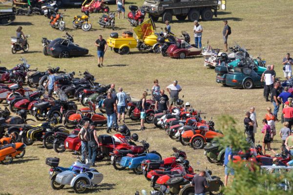 Oldalkocsis motorkülönlegességekből idén sem volt hiány. Emlékezetes pillanat, amikor berobogott a találkozóra két, dán gyártmányú 1938-as oldalkocsis Nimbus. A főszervezők már éppen készítették nekik a legidősebb oldalkocsis motornak járó serleget, amikor megérkezett Kercsi László (67) Miskolcról 1932-es oldalkocsis BSA Blue Star-javal és bezsebelte a díjat.