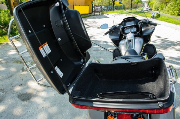 Ha valaki azt mondja, hogy Harley túramotor, akkor elsőre a Road King, az Electra Glide, netán az Ultra nevek ugranak be, pedig alighanem a Road Glide-ok a leginkább karizmatikus példányok. Mivel sok éven át nem forgalmazták hazánkban a cápaorrú óriásokat, sokkal ritkábbak az utakon, mint a denevéridomos Touring modellek. Amit a Road Glide-okról érdemes tudni, hogy két változatban léteznek: az alapmodell Special vagány bagger, az Ultra utónevű verzió pedig luxustúrázó, vagyis az Ultra Limited alternatívája. A Speciallel ellentétben háttámlás utasüléssel, nagy topcaseszel és párnázottabb vezetőüléssel rendelkezik. Hogy mennyire fontos szempont volt az, hogy az utasnak is maximális komfortérzete legyen, azt mi sem példázza jobban, mint hogy jókora lábtartó trepnik jutottak hátra is, s hogy külön hangszórókat integráltak a fotel oldalhurkáiba. A vezető sem panaszkodhat, a nagyobb plexi és a terelőidomok miatt minimális mértékű szél éri – akinek ennél jobb szélvédelem kell, inkább üljön autóba. A fejidomra egy méretes, vízszintes légcsatornát is vágott a Harley, ahol beengedhetjük a levegőt a testünkre. Nem vitás, hogy nyári forróságban, városi haladáskor sok előnye van.