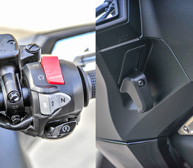 A DCT-váltó sport módban magasabb fordulaton kapcsol. A rögzítőfék karját a bal oldali tükör alatt találjuk