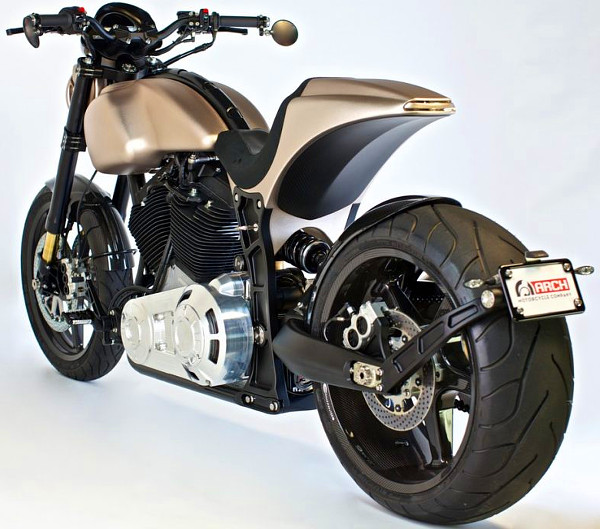 Pénzt és erőfeszítést nem sajnálva készül az Arch Motorcycles által kínált KRGT-1-es, például a benzintartály két felét egy 242 kg-os alumínium-tömbből marják ki, amelynek a végén két darab 9 kg-os tartály marad; a kettő között helyezkedik el a szívósor.