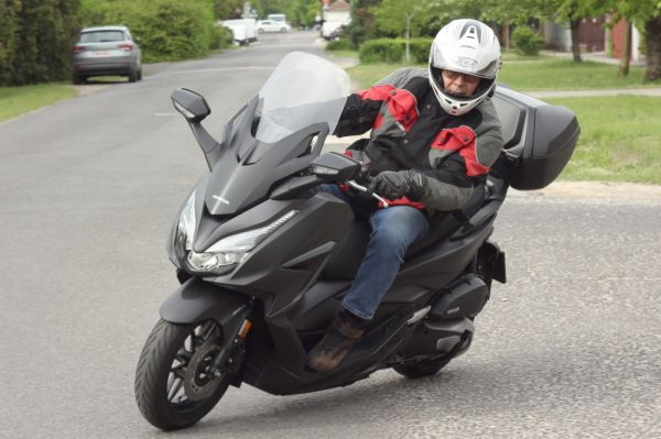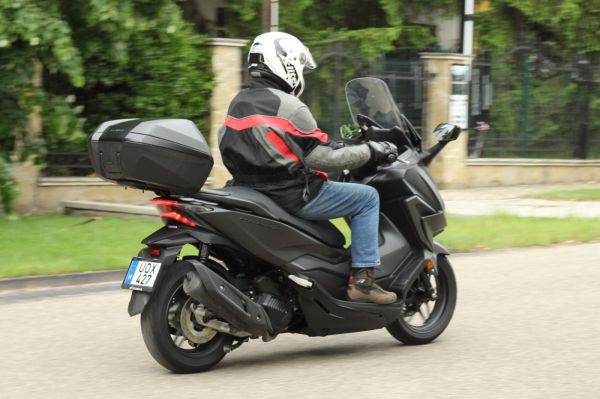 Nem tudom, látszik-e, de nagyon kényelmesen ülök… Amikor elhoztam, elsőre alig láttam a különbséget a 350-es Forzához képest – az illúzió az elindulásig tartott. Persze, ez egy 125-ös… ugyanakkor a többi kategóriatársához viszonyítva nagyon jó. A teljesítménye kihasználja a kategória lehetőségeit, mármint a 11 kW-ot, és a nagyobb Forzánál elmondottak itt is érvényesek, már amit az erőátvitel és a motor egységéről írtam, az összhang itt is nagyon jó. A Honda építőszekrény-elve itt jól látszik, mert a gép alapfelépítése ugyanaz, a műszerfal ugyanaz és a fíling is – egészen a gyorsulásig; de ne legyünk telhetetlenek.
