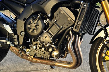 A 106 lóerős teljesítmény tulajdonképpen a pár évvel ezelőtti ezres gépek szintjét hozza. Az új négyszelepes hengerfej és a testvérmodellekhez képest módosított szívó- és kipufogócsatornák jóvoltából az alsó fordulatszám-tartományban sem tétlenkedik a már-már túlságosan visszafogott hangon dolgozó, soros négyhengeres egység – a 44 lóerővel combosabb, 1000 cm3-es FZ1-eshez képest minimális a különbség! Átütő erőre azonban akkor számíthatunk, ha a fordulatszámmérő mutatója elhagyja a 6000-es jelzést. Ekkor mintha újult erőre kapna a blokk, s a könnyített főtengely meg sem áll a közel 12 000-nél bekövetkező leszabályozásig. Pillanatok alatt beleszaladhatunk igen komoly sebességtúllépésbe, hiszen a második sebességfokozat 150 km/óra felett „fogy el”… Az FZ8-as tehát egyáltalán nem nevezhető vérszegénynek!