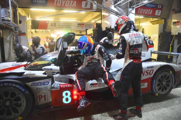 Jóllehet, egy Alonso-győzelem PR-értékére nagy szükségük volt, sokáig egyáltalán nem tűnt biztosnak, hogy a 8-as rajtszámú Toyotában Sébastien Buemivel és Kazuki Nakajimával rajthoz álló spanyol ász ünnepelhet majd a dobogó tetején. A 7-es autóval versenyző Kamui Kobayashi-Mike Conway-José María López trió csak a 2. helyről indult, de hamar átvette a vezetést, és a 8-as egy rossz ütemben elkapott Safety Car-fázis, majd egy időbüntetés miatt – Buemi túl gyorsan hajtott egy lassú zónában – bő 2 perces hátrányba került. Alonso azonban az éjszaka négy etapot is teljesítve fergeteges tempót ment, olykor 3-5 másodpercet verve a háromszoros túraautó világbajnok Lópezre körönként, majd a helyére beülő Nakajima reggel 7 óra előtt vissza is előzte a 7-es Toyotát a Mulsanne kanyarnál.