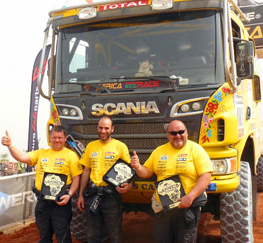 A Kovács, Czeglédi, Ács triót a DAF szervizkamion fedélzetén utazó Várda Ferenc, Kovács Tibor és Rendvai László hármas, valamint Mészáros Sándor csapatmenedzser segítette a 2015-ös Africa Eco Race-en.
