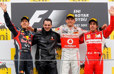 Jenson Button ma duplán ünnepelhet, hiszen 200. Forma-1-es nagydíján nyerte meg a 26. Magyar Nagydíjat az esőáztatta Hungaroringen. A brit pilóta tényleg elmondhatja, hogy az életben egyszer fent, egy lent vagyunk. Az utóbbi két nagydíjon ugyanis először a csapatának, majd a technika ördögének köszönhetően esett ki, most viszont minden összevágott és 2006 után immár másodszorra állhatott fel a Hungaroring dobogójának legtetejére. A második helyezett Sebastian Vettel sem búslakodhat, mert bár nem nyerte meg a futamot, mégis növelni tudta előnyét az egyéni ponttáblán. A bronzérmes helyezés Fernando Alonsoé lett a Ferraritól. „Valamilyen oknál fogva szeretem az ilyen időjárási körülményeket. Nagyszerű lépés volt a csapattól, hogy jó időben tették fel nekem a lágy abroncsokat. Egészében véve nagyszerű hétvége áll mögöttünk.” – szögezte le Button.