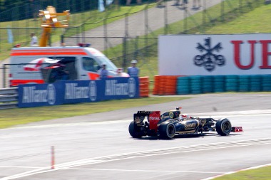 De az ismerkedésen felül már komoly munka is zajlik ilyenkor, hiszen most teszik meg az első kilométereket a háklis Pirelli abroncsokkal éles körülmények között, a mérnökök szorgosan gyűjtik az adatokat. Több másodperces különbségek vannak a a köridőkben, mert van, aki már versenytempóban nyomja – mint például Pastor Maldonado, aki épp most ismerkedett meg a kavicságyban áthajtás szépségeivel -, és vannak olyanok, akik egy-egy kanyarban lassan haladva nézik az íveket. Egy ilyen versenyző miatt választotta a zöldövezetet a a venezuelai pilóta, hiszen arra nem számíthatott hogy a vánszorgó autóval az ideális ívre húzódik le az előtte haladó. Mindenki megúszta a dolgot.