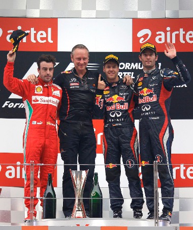 A Red Bull német versenyzője ezúttal is végig domináns szerepet játszott a hétvége során, akárhogy igyekezett Fernando Alonso, nem sikerült utolérnie Vettelt, de az ötödik helyről rajtolva így is begyűjtötte az ezüstérmes helyet és az azért járó értékes pontokat. A dobogó harmadik helyére Vettel csapattársa, Mark Webber állhatott fel. „A világbajnokság szempontjából ez nagyon jó lépés volt számunkra. Láttuk, hogy milyen gyorsan változhatnak a dolgok. Fantasztikus ez az érzés, és nagyszerű, hogy egy futam úgy alakul, ahogyan te szeretnéd. Büszke és boldog vagyok és nagyon élvezem.” – szögezte le a versenygyőztes Vettel, akinek ez volt zsinórban a negyedik győzelme, s az első alkalom 1989 óta, hogy egy pilóta zsinórban három versenyen minden körben az élen álljon. Akkor ez a bravúr Ayrton Sennának sikerült.
