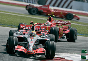 A Ferrari más problémákkal küszködik. Miután komoly ellenfél híján sikerült megnyernie az ausztráliai idénynyitót, Räikkönen olyannyira beleszürkült a mezőnybe, hogy egyesek már levélben kérték számon rajta a McLarennél felejtett tehetségét. Pedig annak ellenére, hogy rendíthetetlenül szenvtelennek tűnik, Räikkönen sem közömbös a környezete iránt, s az időmérőkön elkövetett botlásai ékesen bizonyították, hogy nem nőtt össze azonnal új autójával. Az USA Nagydíj környékén azonban szárnyra kapott, és a köridőgrafikonok tanúsága szerint a verseny alatt már Indianapolisban is ő volt a leggyorsabb, mielőtt Magny-Cours-ban és Silverstone-ban győzni tudott. Massáról kevesen hitték volna, hogy Räikkönen méltó ellenfele lesz, pedig nem adja könnyen magát, s az időmérők utolsó pillanataiban futott fantasztikus mért köreivel már-már a nagy pole-király, Ayrton Senna emlékét idézte. Massa világbajnoki reményeire az mért csapást, hogy Melbourne-ben és Silverstone-ban hátulról kellett rajtolnia, Montrealban meg áthajtott a piros lámpán, egyetlen mozdulattal kiütve magát a versenyből.