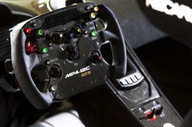 Belekerült viszont egy olyan kormánykerék, ami lényegében megegyezik a Formual1-es versenyautókéval, mindössze pár kapcsolóval kevesebb van rajta. Az autó kifejlesztésében nagy szerepet vállaltak a McLaren F1 csapatnak dolgozó beszállítók. Idén néhány versenyen kipróbálja a gyár az autót, a privát csapatok majd a 2012-es szezonban tudják elkezdni használni az MP4-12C GT3 versenyautót.