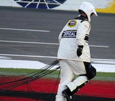 A Charlotte Motor Speedwayen a 4-es és az 1-es kanyar közötti egyenes fölött helyezték el a kamerát, amely két tartókötélen mozog egy harmadik mozgatókötél segítségével. Ez utóbbi ment tönkre, azaz a nehéz készülék nem esett le a talajra, csak a mozgatókötél pattant el.